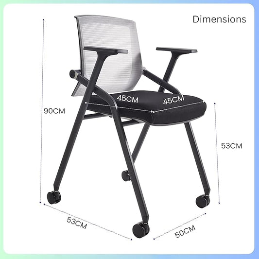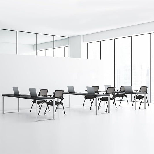 10 Pack Foldable Office Chair with PU Wheels and Sliding Armrest-Ergonomic Mesh Bouncing Back, Stackable Conference Room Chair, Office Guest & Reception & Meeting Chair (Black)