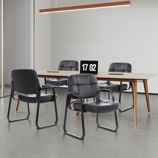 CLATINA Big & Tall 800 lbs Waiting Room Guest Chair, Leather Office Reception Chair No Wheels with Padded Arms for Elderly Home Desk Conference Room Lobby Side Salon Clinic, Black(8 Pack)