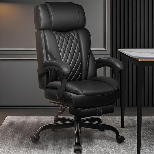 Executive Leather Office Chair, Big and Tall Office Chair with Footrest Home Office Desk Chairs, Ergonomic Computer Desk Chair with Lumbar Support, Reclining Desk Chair with Adjustable Angle