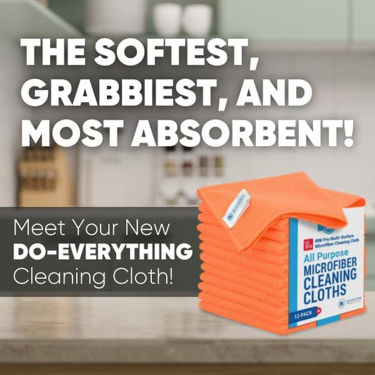 12" x 12" MW Pro Multi-Surface Microfiber Cleaning Cloths | Orange - 12 Pack | Premium Microfiber Towels for Cleaning Glass, Kitchens, Bathrooms, Automotive, Supplies & Products