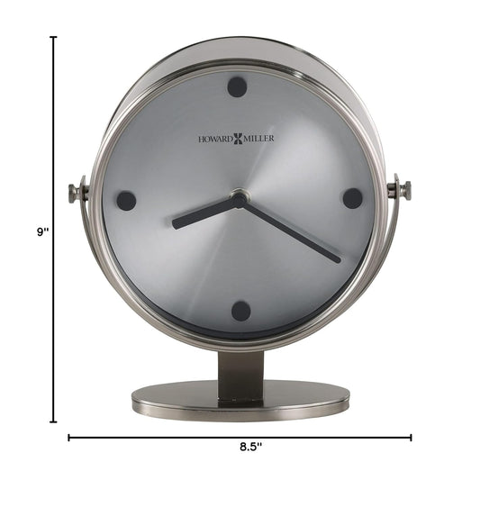 Howard Miller Glen Accent Clock – Modern Desk Clock with Nickel Finish - Battery Operated Quartz Analog Mantel Small Decorative Shelf Minimalist Table Clock for Home & Office Decor