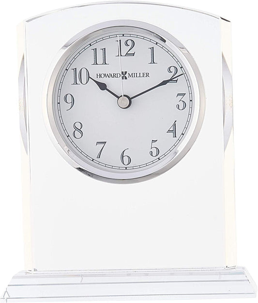 Howard Miller Flaire Tabletop Clock II, Battery Operated Antique Analog Display Desk Clock, Glass Crystal Shelf Clock for Office Decor Home Decor Living Room Decor, House Warming Gifts