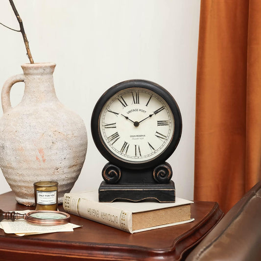 Table Clock for Living Room Office, Bedside, Kitchen | Silent Running Night Shelf Analog Desk Clock with 8 x 9 inch Size | Decorative Table Clocks