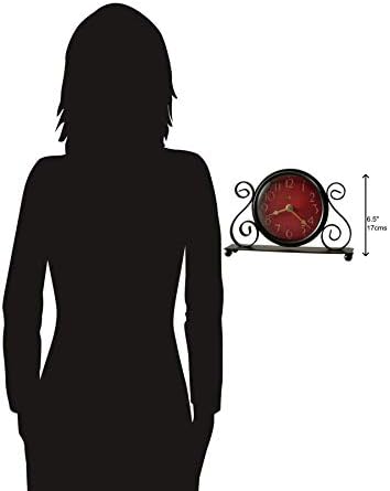 Howard Miller Marisa Tabletop Clock – Antique Red Dial Decorative Scrolling Iron Design Quartz Movement Vintage Style Traditional Decorative Table Clock for Elegant Home Decor