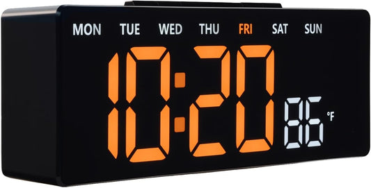 8inch Extra Large Impaired Vision Digital Alarm Clock with Day and Time for Elderly Calendar Clock Auto Dimmable Clock