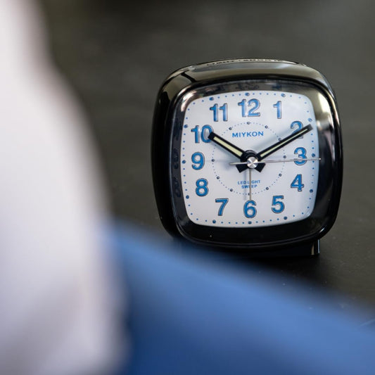 Miykon Small Square Analog Alarm Clock – Silent Non-Ticking, Battery Operated with LED Light & Snooze – Desk, Table, Travel or Bedside Clock for Bedroom, Office, Bathroom – Black 2.5 Inch