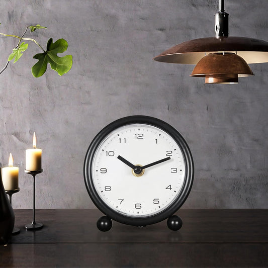 5.1" Desk Clock,Small Retro Desk Clock Battery Operated,Slient Metal Table Clock with Classical for Living Room Decor,Bedroom,Bedside (Black)