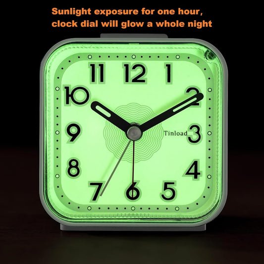 Small Battery Operated Analog Travel Alarm Clock Silent Non Ticking,Gentle Wake, Ascending Beep Sounds, Snooze,Lighted on Demand, Glow in Dark dial,Easy Set