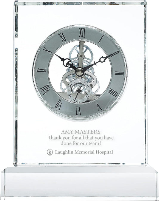Baudville Engraved Clock Trophy - Executive Crystal - Rectangular Shaped on a Rectangular Base - Silver Inset Time Piece (Silver)