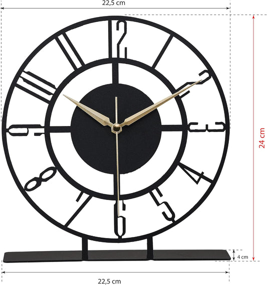 Metal Table Clock | 8.9 x 9.5 inch Size Round Silent Running Metal Black Clocks | Living Room and Bedside Suitable Table Decorations for Home and Office