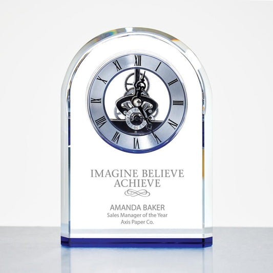 Baudville Blue Accent Arched Skeleton Clock - Personalized Engraving Up to Three Lines and Pre-Written Verse Selection
