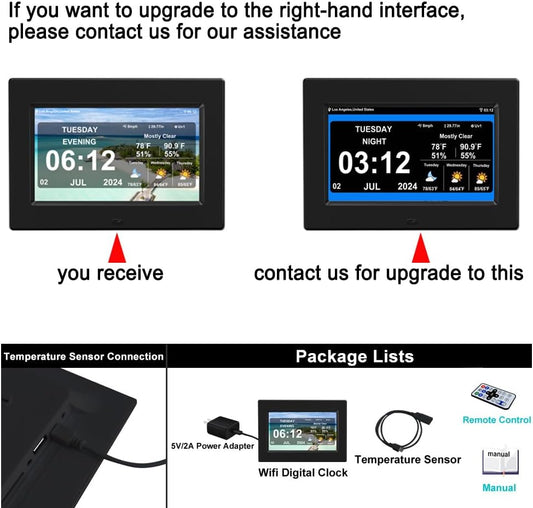 WiFi Digtial Wall Clock,Desk Clock with Weather Temperature Humidify,10 Day Weather Forecast,Weather Station with Digital Calendar and Dementia Alarm clockx for Seniors.(Black, 7 inches)