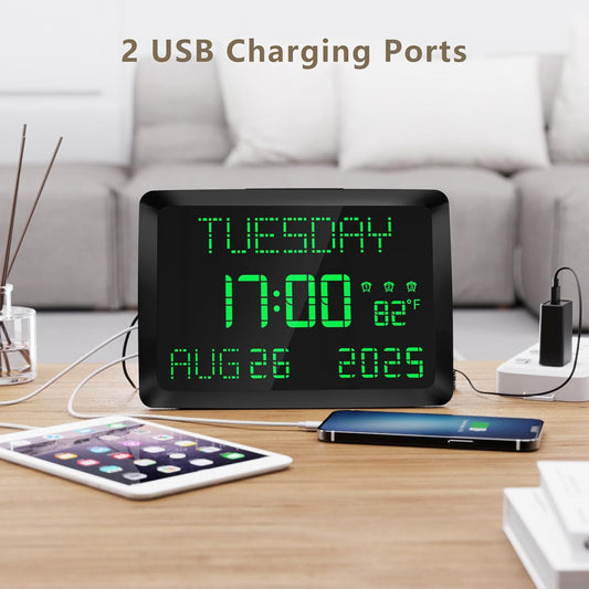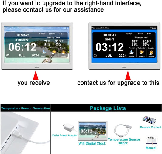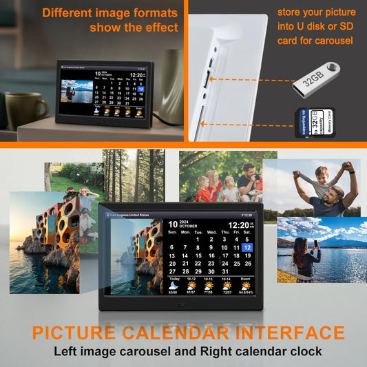 2025 New Digital Weather Clock with Temperature Humdity Alarm Clock (10.1- inch Black)