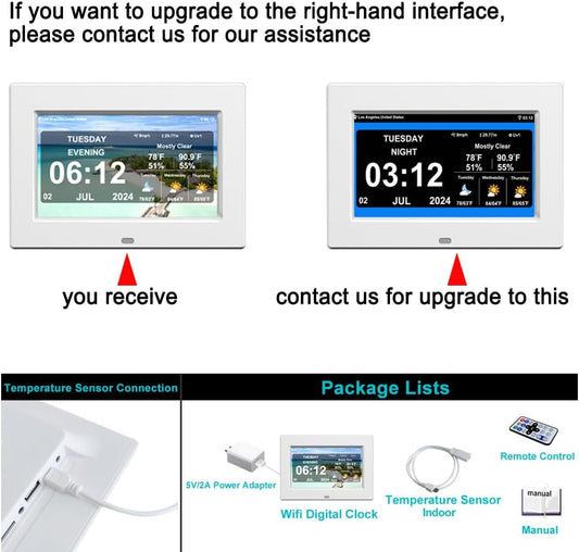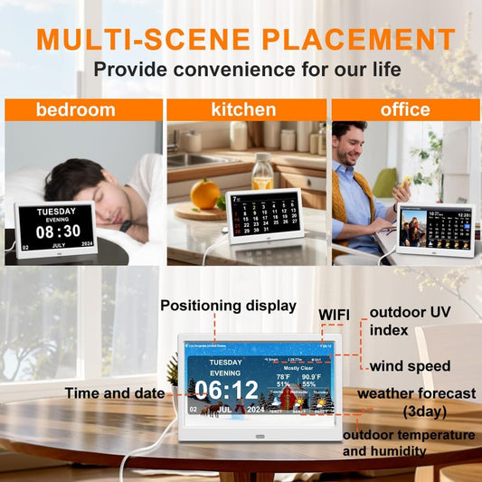 WiFi Digtial Wall Clock,Desk Clock with Weather Temperature Humidify,10 Day Weather Forecast,Weather Station with Digital Calendar and Dementia Alarm clockx for Seniors.(Whith, 7 inches)