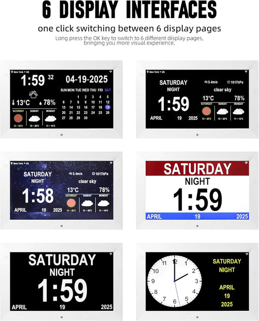 Digital Alarm Clock with Date and Time for Elderly Digital Calendar Clock Photo Frame- Auto Dimmable Display 15 Alarm Options (10.1 inch/Black)