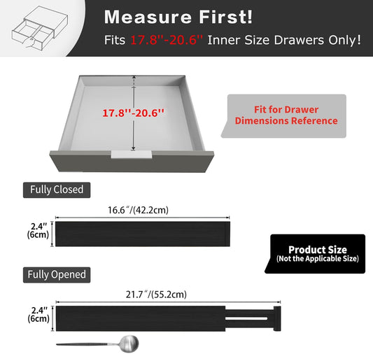 Bamboo Drawer Dividers Organizer with Inserts, Expandable from 12.5-21.7", Adjustable Drawer Organizer Separators for Utensils, Dresser, Bedroom, Bathroom, Closet, Clothing, Office (Black)