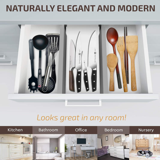 BAMEOS 4 pcs 3" High Bamboo Drawer Dividers Adjustable Drawer Organizer Expandable Drawer Organization Utensil Organizers for Kitchen Dresser Bathroom Bedroom and Office