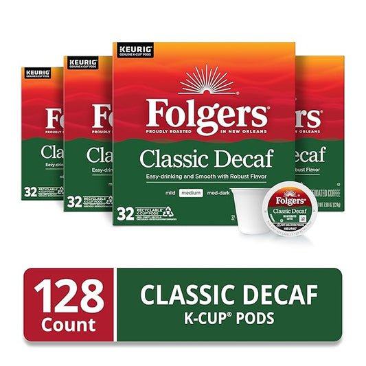 Folgers Classic Decaf Coffee, Keurig K-Cup Pods, 128 Count