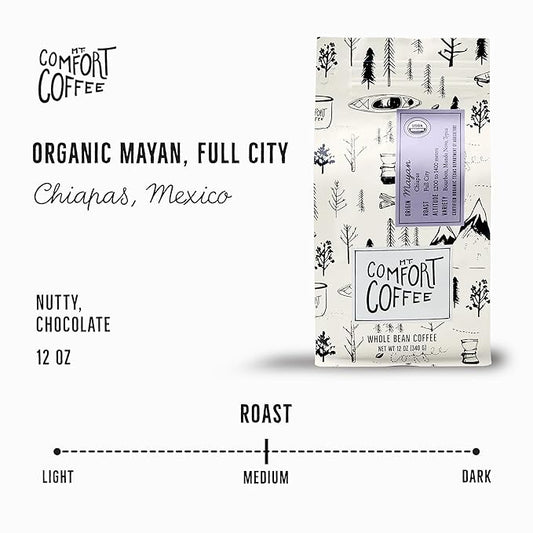 Mt. Comfort Coffee Organic Mayan Whole Bean Coffee, 12oz – Full City Roast with Nutty & Chocolate Notes – Sustainably Sourced from Small Mexican Farms