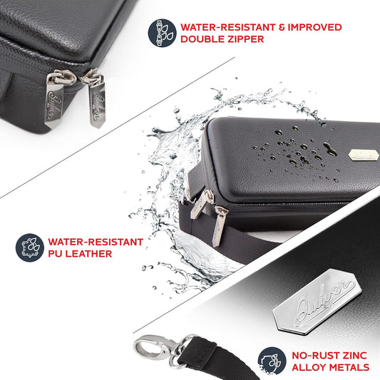 Quiver Time Black Quiver Card Carrying Case - TCG Cards Deck Box Holder for Trading Cards, MTG Bag Playing Card Case (+Wrist & Shoulder Strap, Dividers, Separators, Corner Pads + 100 Apollo Sleeves)