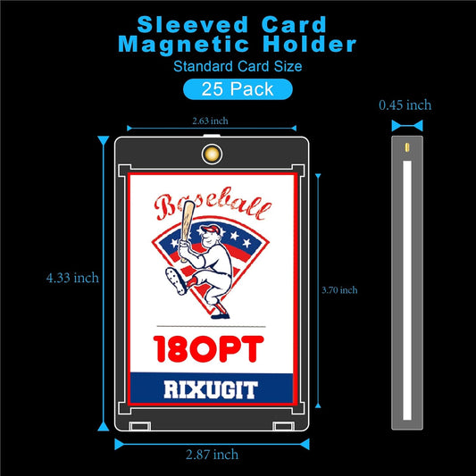 25-Pack Sleeved-Card Magnetic Holder - 100PT One Touch Magnetic Card Holder, Large Inner Size 2.63"x3.70". Fits Soft Card Sleeves on Cards First, Then into Card Holders for Double Protection
