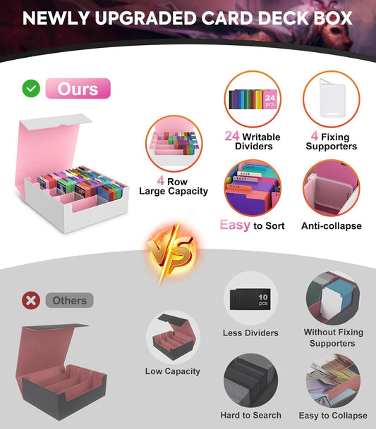 MoKo Trading Card Storage Box, 3000+ MTG Deck Box with 24 Colorful Dividers & 4 Card Supporters, Commander Card Deck Case Fits for Magic Game Cards, YugiOh, TCG, PTG and Sport Cards, White+Pink