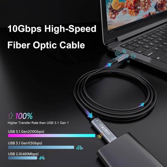GeoHN.G USB C to C Fiber Optic Cable 5M/16.5FT, USB 3.2 10Gbps Long Distance Data Transfer USB C Extension Cable for VR, Camera, Mini PC, Laptop, Webcam, Printer and More
