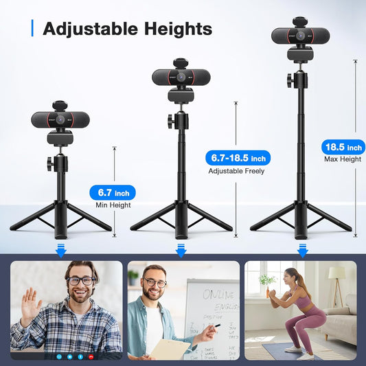 4K Webcam for PC with Sony Sensor, Auto Focus & Privacy Cover, Ultra HD 4K Streaming Camera, 2 Noise-Cancelling Mics, USB Plug & Play, 77° FOV, Web Camera for Zoom, Skype, Teams, Video Calling