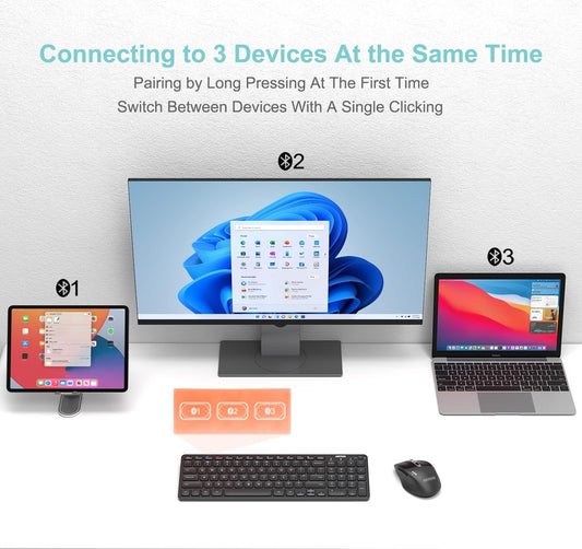 Arteck HB305-2 Universal Multi-Device Bluetooth Keyboard Ultra Compact Wireless Bluetooth Keyboard with Media Hotkeys for Windows iOS iPad OS Android Computer Desktop Laptop Surface Tablet Smartphone