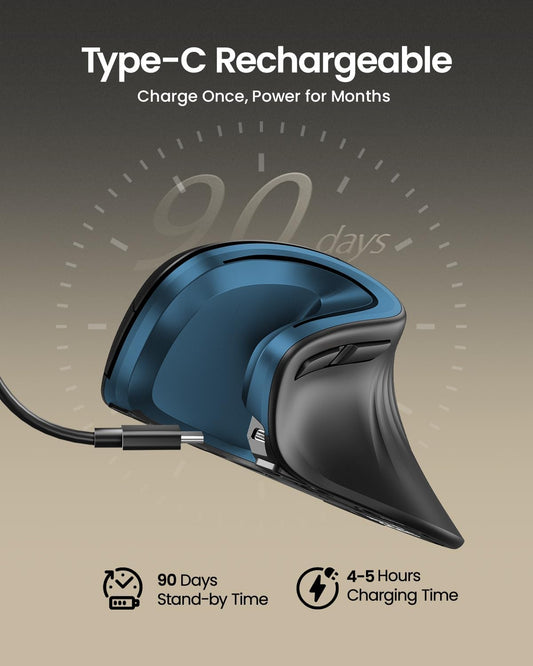 ProtoArc Ergonomic Vertical Mouse, EM11 NL Rechargeable Wireless Mouse Bluetooth, Ergo Mice with 3 Multi-Device for PC/Notebook/Laptop, 2.4GHz Optical Mice for Windows, Mac OS, Blue