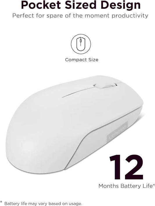 Lenovo 300 Wireless Mouse – Computer Mouse for PC, Laptop with Windows – Ambidextrous Design – 2.4 GHz Nano USB Receiver – 12 Month Battery Life