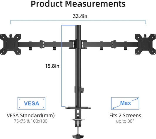 MOUNT PRO Dual Monitor Mount Fits 13-32 Inch/17.6lbs LCD Screen, Computer Monitor Desk Mount, Articulating Monitor Arm, Height Adjustable Display Stand for 2 Monitors, VESA Mount 75x75/100x100mm