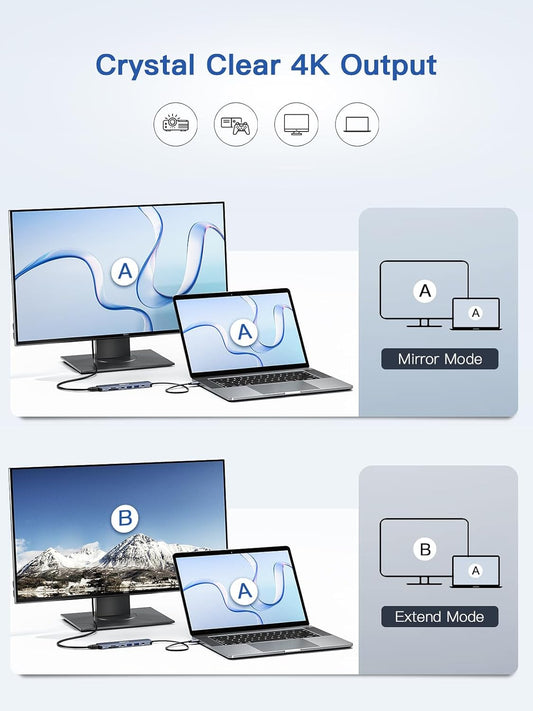 Dockteck 9-in-1 USB-C Hub: HDMI 4K@60Hz, Ethernet, 100W PD, Audio, 2x USB-A 5 Gbps, SD/TF Card Reader for MacBook, iPad, XPS, Microsoft