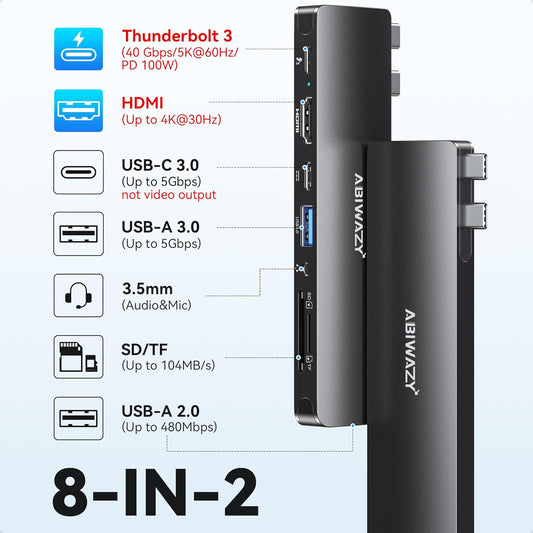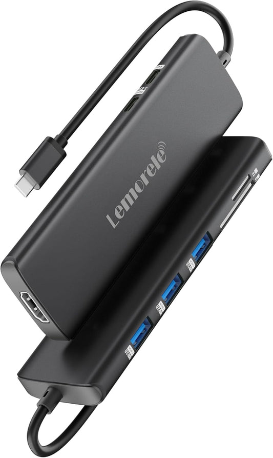 Lemorele 8-in-1 USB C Hub Multiport Adapter, USB-C Hub with 4K HDMI Output, 100W Power Delivery, USB 3.0 5Gbps Port, SD/TF Card Reader Adpater, Compatible for MacBook Pro, XPS, Chromebook and More