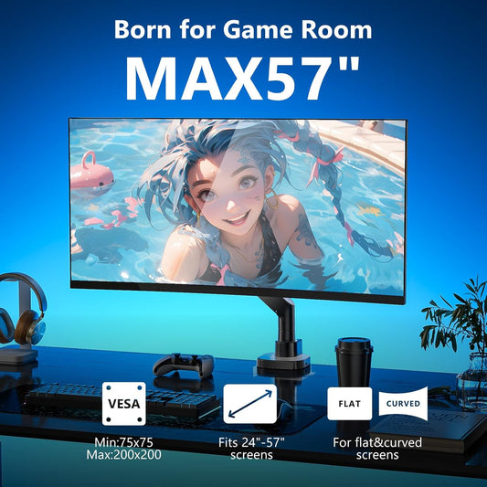 WALI 24-57" Monitor Arm, Heavy Duty Gas Spring Desk Mount for Ultrawide Flat and Curved Screen Up to 59.4lbs, VESA 75x75 to 200x200 (GSMU001XL-P), Black