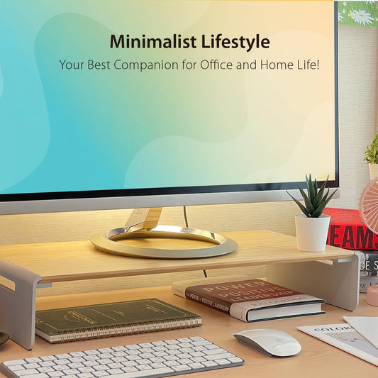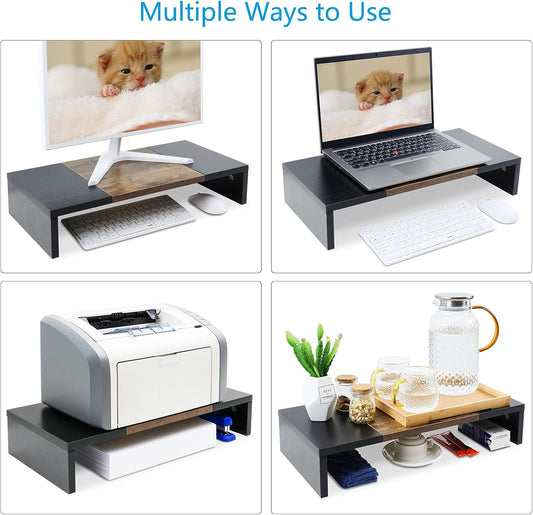 Fenge Monitor Stand Riser, Desk Top Shelf for 2 Monitors, Computer Stands for Desk, Wood & Steel Desktop Riser for Laptop, PC, Printer