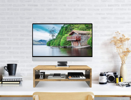 FITUEYES Monitor Stand - 2 Tier Computer Monitor Riser Shelf, Wood Desktop Stand for Laptop Computer Screen, Desk Organization, Office Supplies