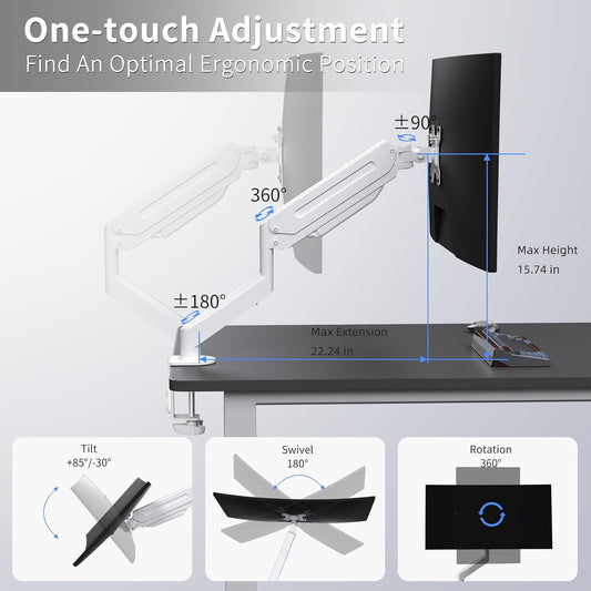 Suptek Monitor Mount Gas Spring Single Monitor Arm Desk Mount Stand Fully Adjustable Fits 17 20 22 23 24 26 27 32 inch Monitors (White)