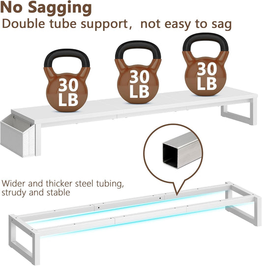 Dual Monitor Stand Riser 43.7 inch Large Extra Long Monitor Stand Riser Wide TV Stand Riser Monitor Stand for 2 Monitors Wood & Steel Leg Desktop Riser Desk Organization Home Office (White)