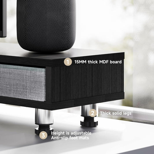 WALI Dual Monitor Stand with Storage, Desk Organizer with Drawer and Pen Holder, Desk Monitor Riser 3 Height Adjustable, Laptop Riser for Computer, Laptop, Printer (STT003DH-2B), 2 Pack, Black