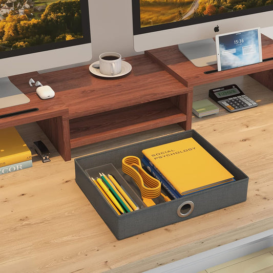 WESTREE Dual Monitor Stand Riser with Two Drawers, Extra Large Storage for 2 Monitors, Desktop Oraganizer Computer,Laptop,Screen,Printer,TV
