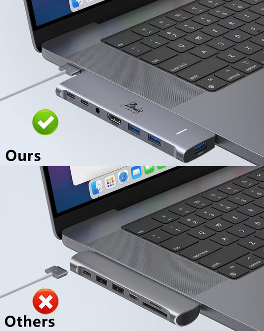 USB C Hub Adapter for MacBook Pro/Air M1M2M3 2022 2021 2020 13"15"16",Multiport MacBook Adapter MacBook Accessories with 4K HDMI,3USB3.0,Audio,100W Thunderbolt-Enabled USB-C,Support MagSafe 3 Charging