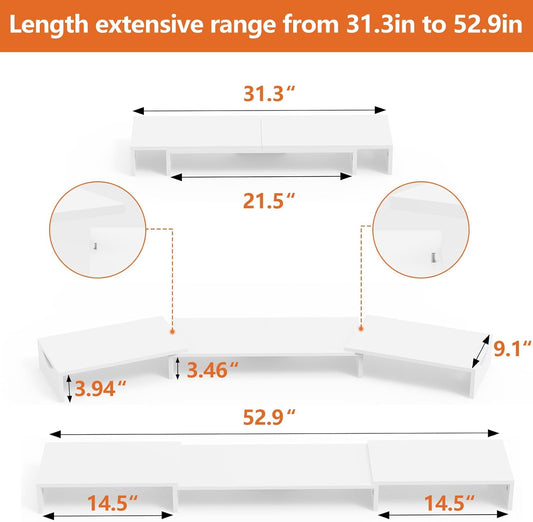 WESTREE Dual Monitor Stand Riser with Drawer - Adjustable Length and Angle, 2 Phone Hold, Desktop Organizer for Computer/Laptop/PC/Printer