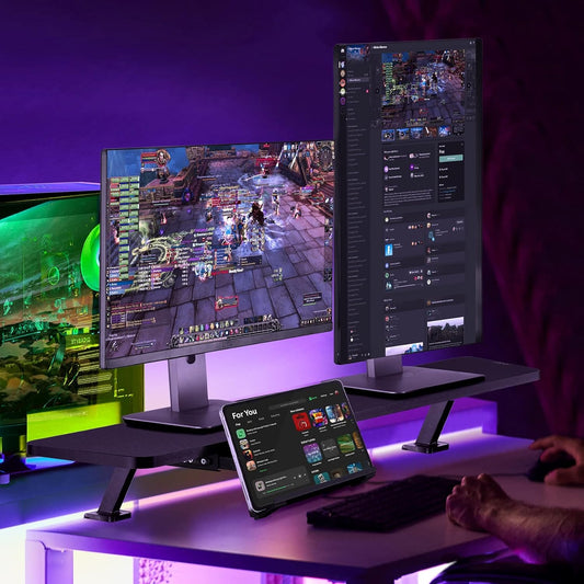 Triple Monitor Stand Riser, Extra Long Monitor Lift for 3 Monitors, Dual Monitor Stand with Length and Angle Adjustable