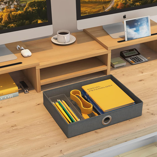 WESTREE Dual Monitor Stand Riser with Two Drawers, Extra Large Storage for 2 Monitors, Desktop Oraganizer Computer,Laptop,Screen,Printer,TV