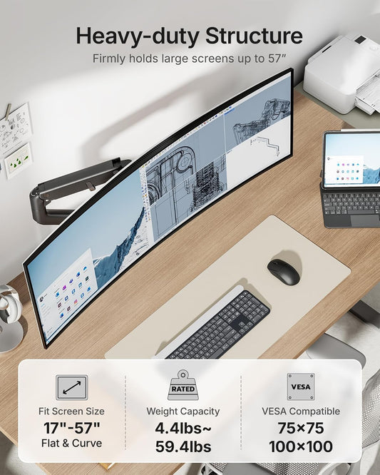 monTEK 17-57 Inch Dual Ultrawide Monitor Arm for Up to 59.4lbs Screen, Aluminum Heavy-Duty Gas Spring Vertical Stackable Curved Screen Adjustable Monitor Stand,75/100mm Vesa Mount, Black