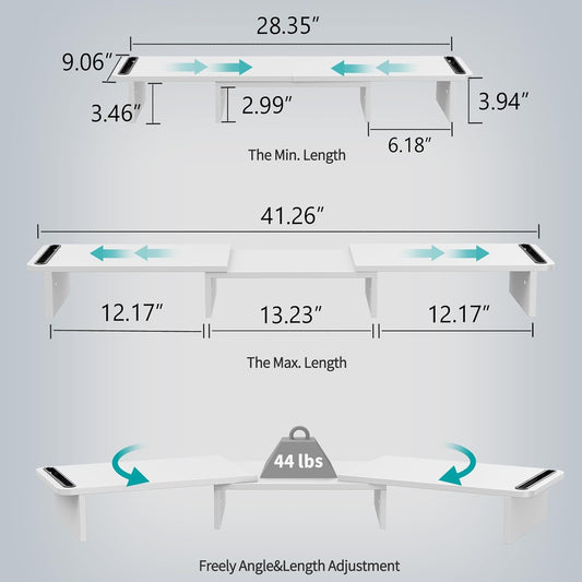 Dual-Monitor Stand for Desk - Large Adjustable Length and Angle Riser for 2 Monitors, Double Computer Desktop Organizer, Shelf for TV, Laptop, Printer