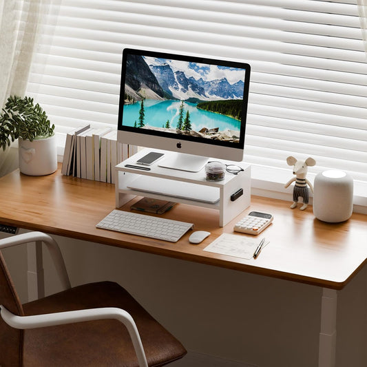 SAMDI Wooden Computer Monitor Stand, Desktop Accessories, Laptop Stand, Notebook Stand, for MacBook Stand (Oak Wood White)