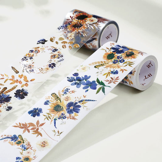 WT Fall Flowers Wide PET Tape, Single Roll, Original Designs, Floral Decorative Tape, Craft Clear Tape, Bujo Planner Supplies, Watercolor Flower Tape, DIY Transparent Tape