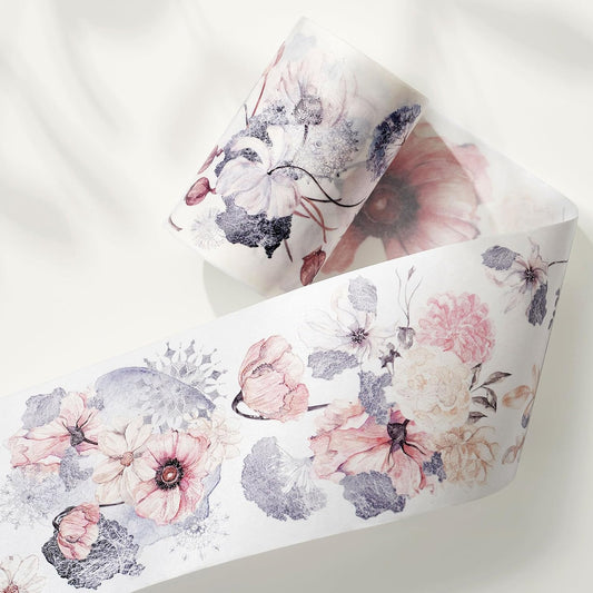 WT Frozen Wide Washi Tape, Single Roll, Original Designs, Pastel Vintage Floral Decorative Tape, Adhesive Paper Tape for Junk Journals, Scrapbooks, Bujo, Planners, DIY Crafts, Gift Supplies